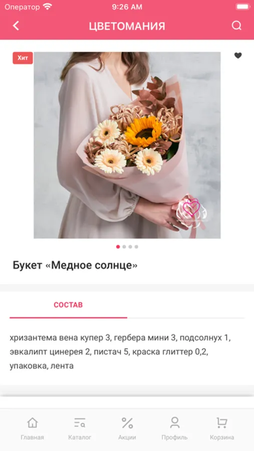 Цветомания – сервис доставки свежайших букетов, составленных непосредственно в момент заказа лучшими флористами города. Детально продуманная система логистики и команда профессионалов позволяет нам доставить букет, способный удовлетворить даже самые изысканные запросы, в любую точку города в любое удобное для вас время.
