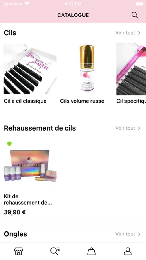 Nous avons une gamme d’extension de cils qui nous appartient et tout pour les ongles.