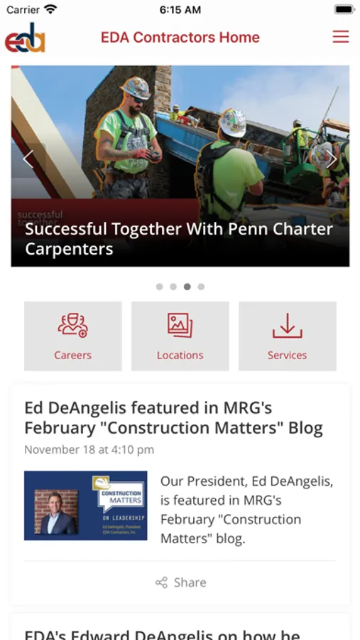 • News - stay up to date with the latest news. Push notifications allow you to see timely and exciting news from EDA Contractors.