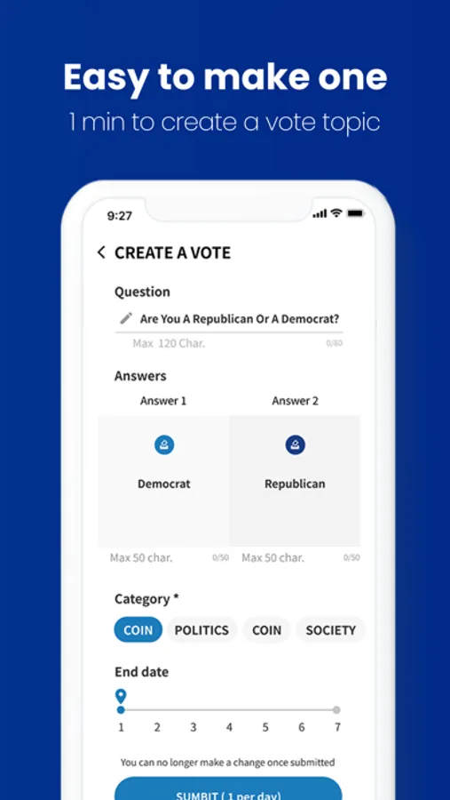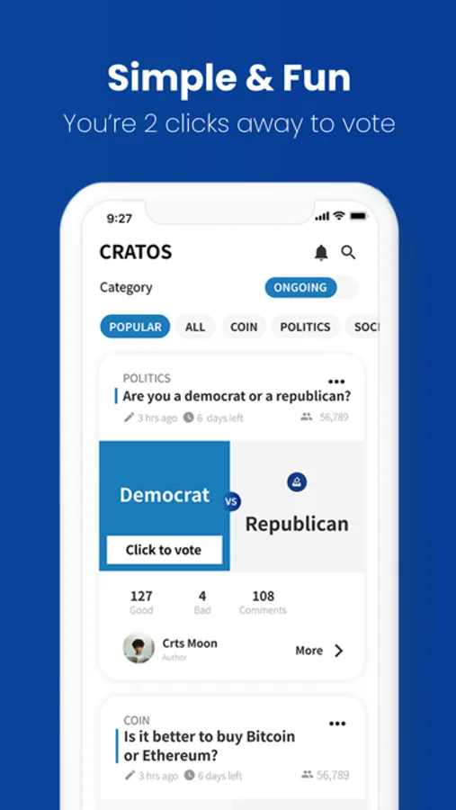 Easy to vote & have fun: Simple UI and 2 clicks to vote for your opinion