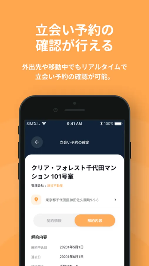 立会い予約の確認をアプリ上で確認でき、住所など立会いに必要な情報を確認できます。
