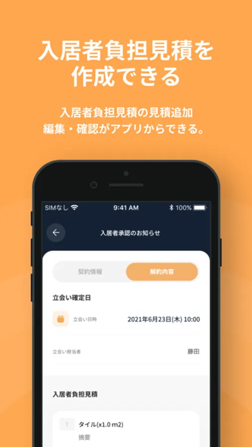 立会い日の予約確認や面倒な見積作成などが、アプリからいつでもどこでも簡単に行うことができます。