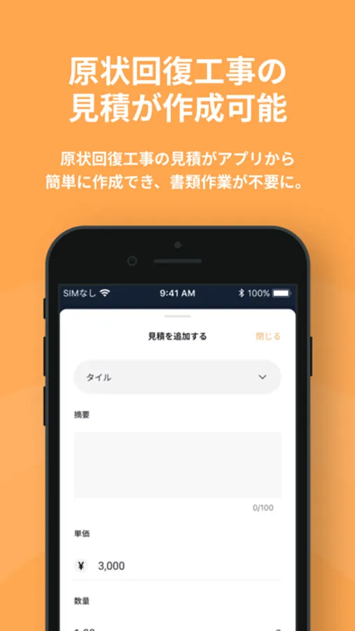 アプリから簡単に見積書の作成を行うことができ、書類作業などの業務だけではなく、管理会社とのやり取りなどもより削減することが可能になります。