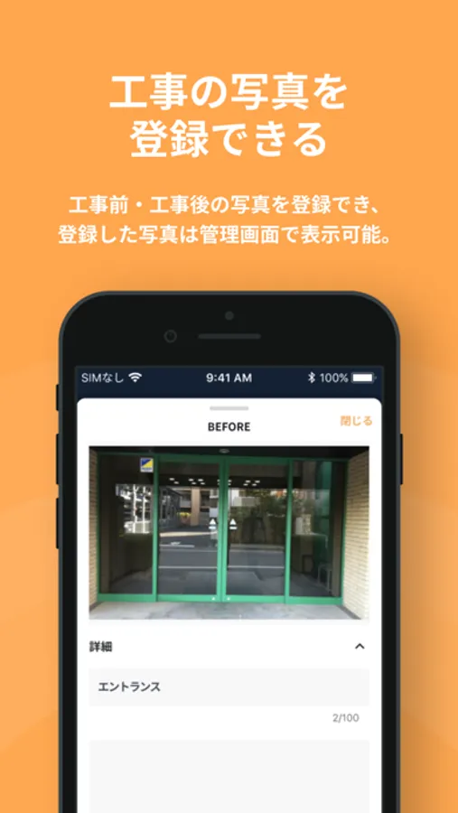 工事前・工事後の写真を登録することができます。