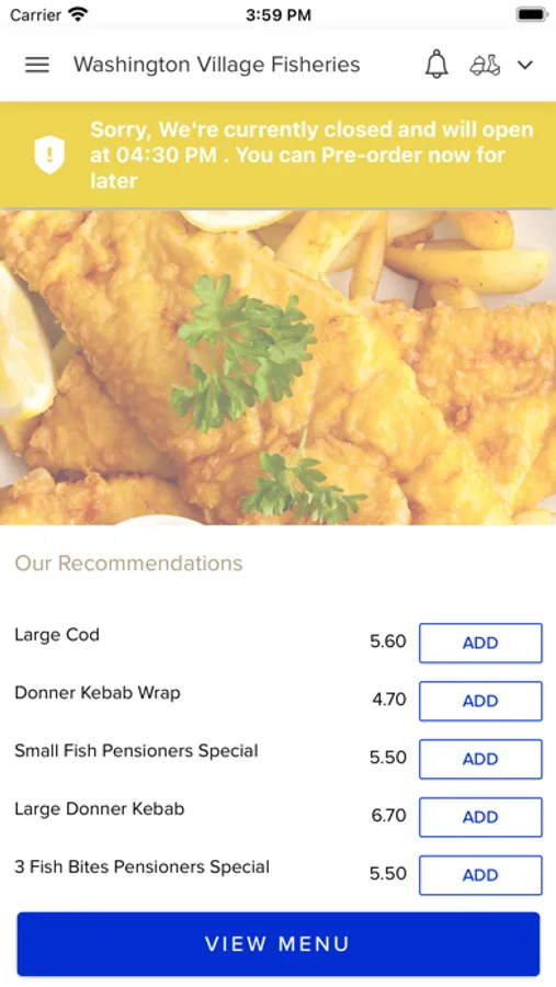 Thank you for visiting Washington Village Fisheries in Washington. We hope you enjoy our online ordering app and your food.
