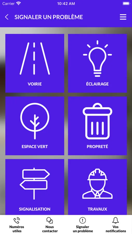 - Signaler un problème à votre mairie en envoyant des photos géolocalisées : voirie, éclairage public, espace vert, propreté, signalisation, travaux, stationnement …