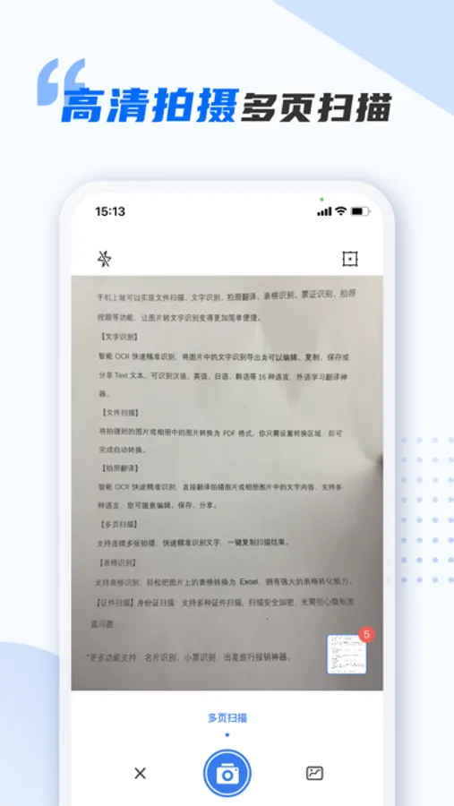 -将扫描到的内容进行快速翻译,并支持多语言识别,是您随身携带的智能翻译宝