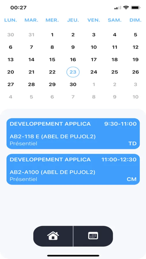 - Consultation de l'emploi du temps du jours choisi