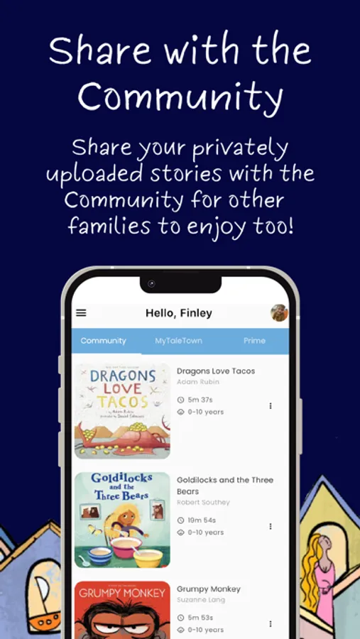 Share and listen to stories from around the world. Create profiles and tailor your child's experience by creating playlists, uploading custom stories and discover stories shared by a community of other books shared by other parents and children.