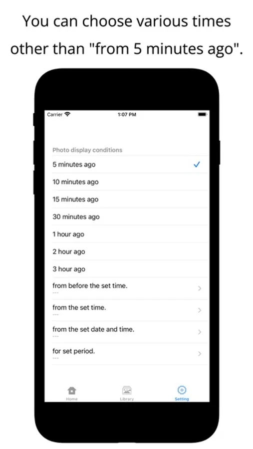 Photos 5min ago is an application that displays only the photos taken within the specified time.