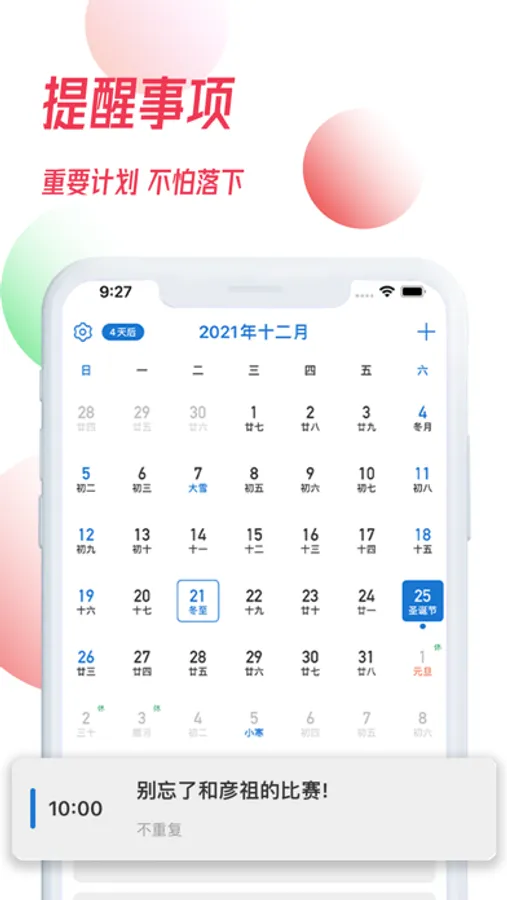 ·自定义提醒、日程、生日(支持农历生日)提醒功能