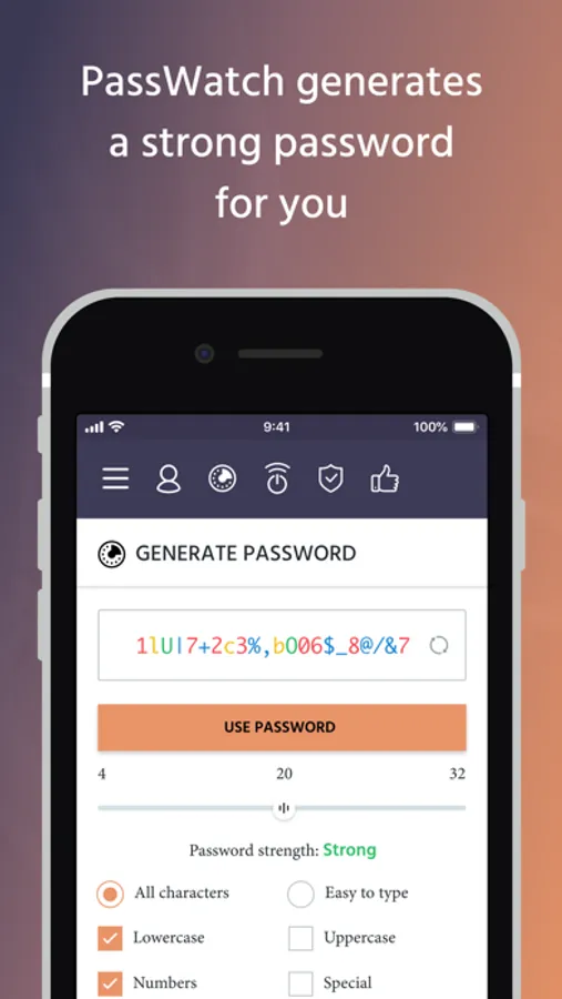 PassWatch is ideal for busy people, all you need to do is remember your master password, and PassWatch will do the rest. You will be able to quickly fill passwords by using our extension or by using our AutoFill, which comes with iOS 12**. Just open the keyboard on a website with a login form, and it will offer to fill out the stored username and password.