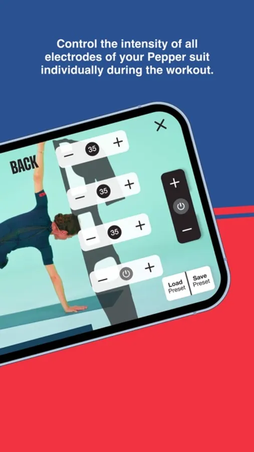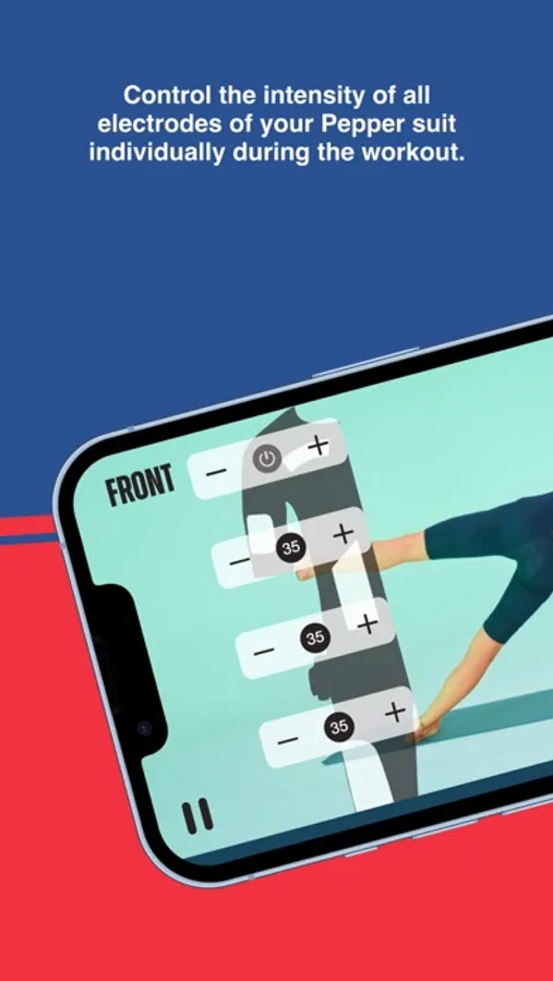 You can tailor your experience by adjusting the intensity for different muscle regions individually. Turn up every area to the level of intensity you desire and even save your intensities for future workouts. Want to train one muscle region only or challenge yourself by using all major muscles of your body to the fullest potential? With the Pepper suit and app, you can do both.