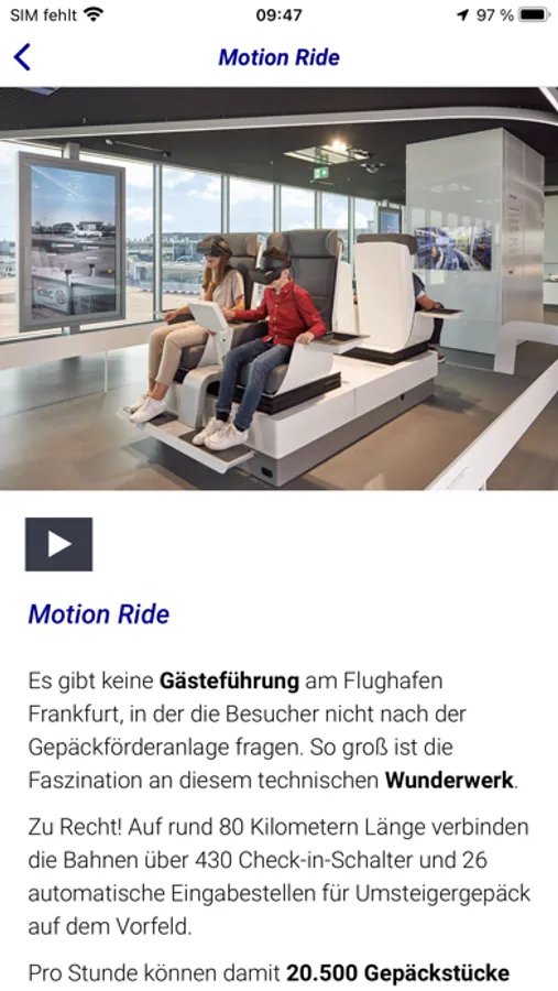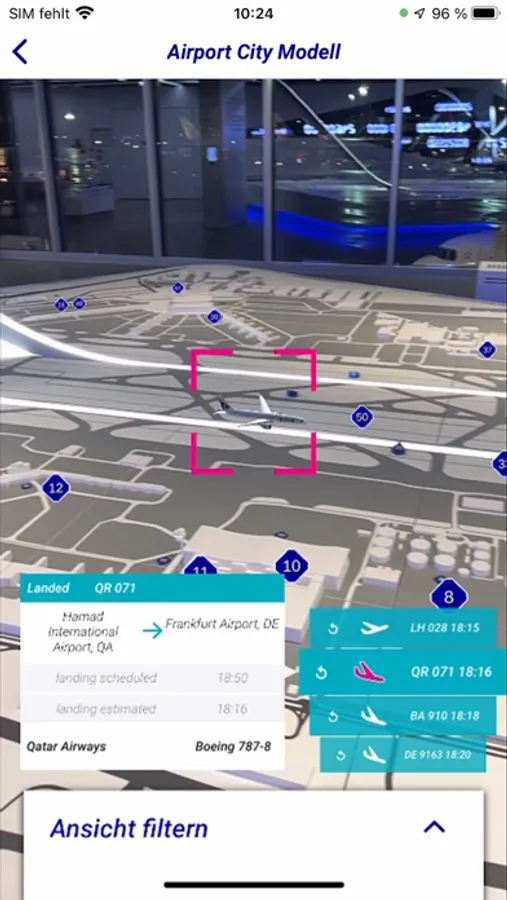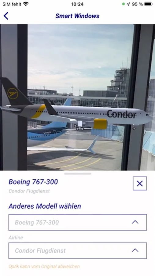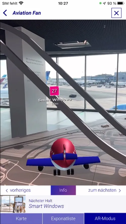 Use your smartphone to watch virtual passenger aircraft take off and land at the Airport City Model based on real flight plan data, and learn exciting details about all 28 exhibits and over 80 airport POIs at the Airport City Model. At the SmartWindows, experience detailed virtual aircraft models at the gates.
