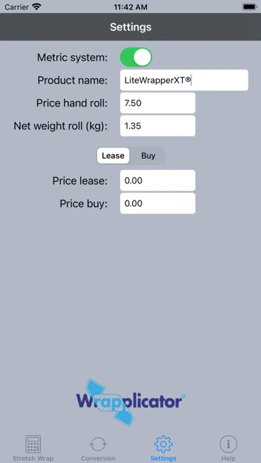 Here you can enter the price of the rolls of Wrapplicator® rolls.