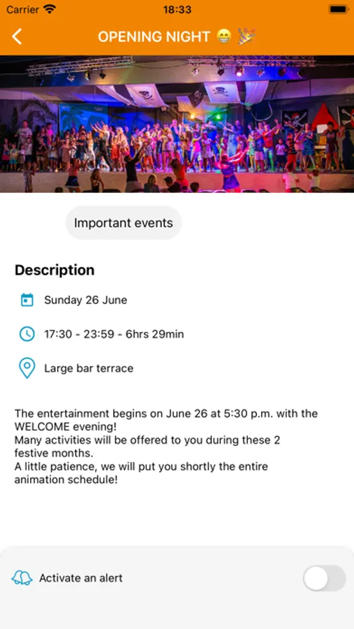 You will also be able to consult all the activities offered and register for those of your choice, directly on your mobile. You will then automatically receive a notification, just before the activity starts. Don't miss anything during your stay!