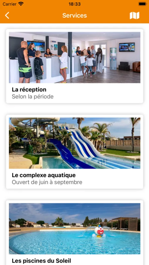 You will quickly identify the strengths and assets of each L'Ami Soleil vacation village: activities, water parks, accommodation, locations, services... Everything is listed here in this mobile application. Finding an estate for your next vacation has never been so easy!