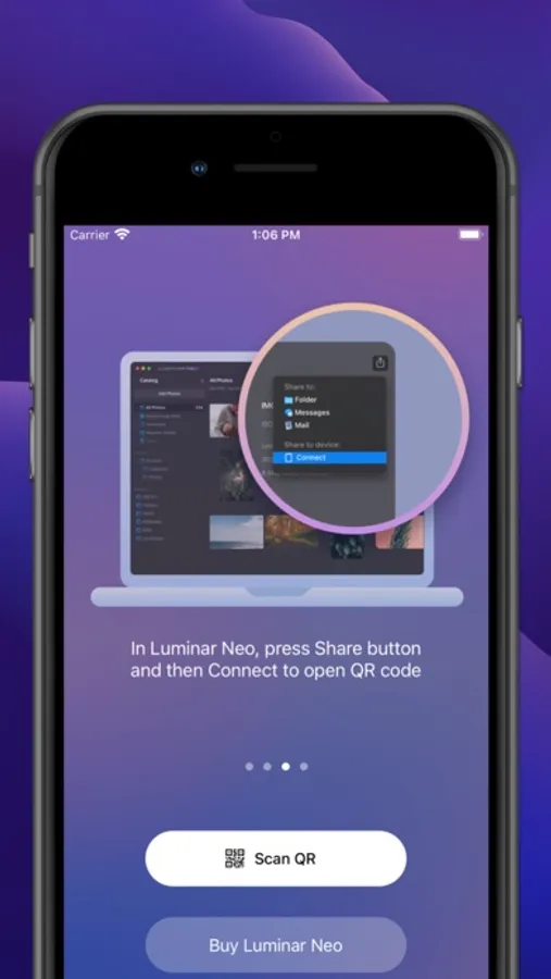 Luminar Share is an app that allows Luminar Neo users to transfer photos from desktop to mobile (and the opposite direction) wirelessly. It also makes it easy for users to share edited photos to their social media accounts.