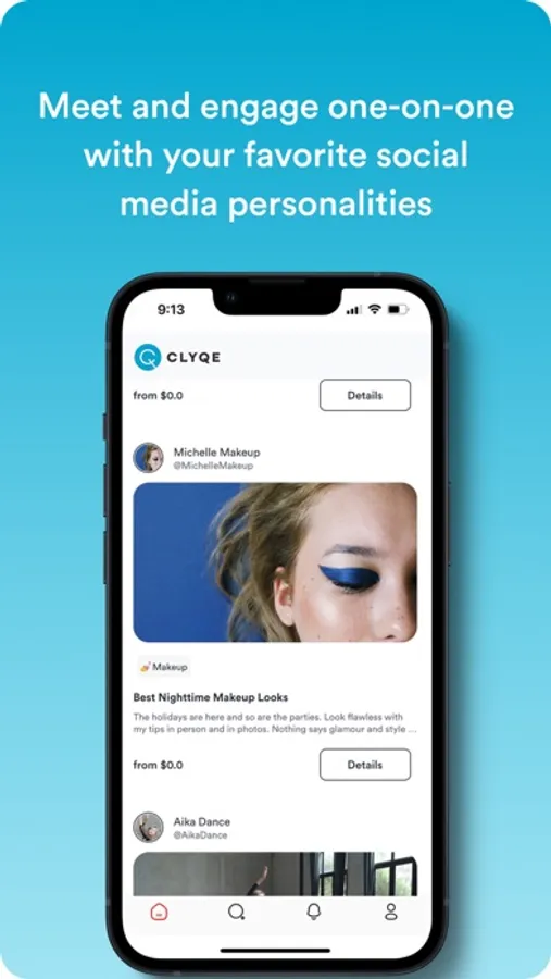 CLYQE allows you to connect with your favorite creators and experts. In an all inclusive easy-to use app you're able to schedule time and receive personalized advice, instruction and connection. There is no subscription fee - you simply pay each time you want to CLYQE.