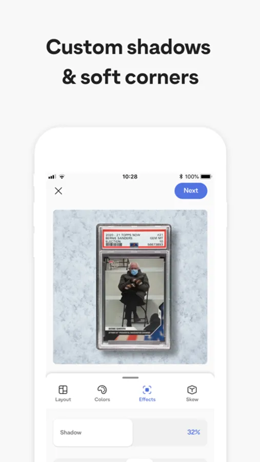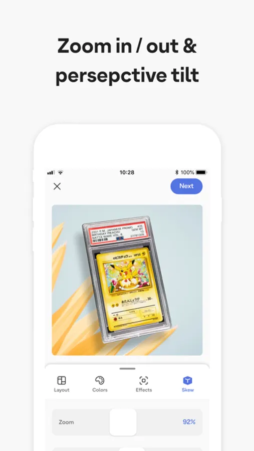 Create beautiful shots of your card collection. Whether Pokemon, baseball, basketball, Formula 1, or even US political moments - make any card standout.