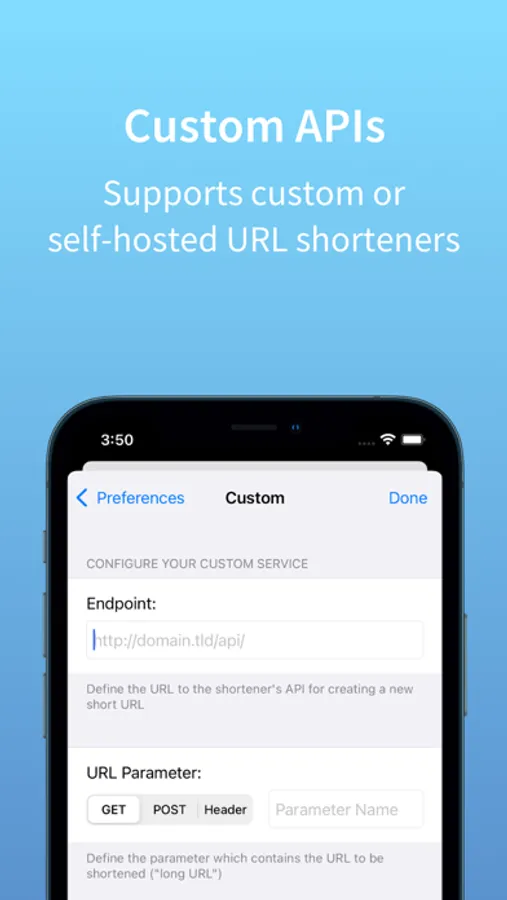 Shortshare supports the major features of the URL shortener services, e.g. custom domains or custom URL parameters for your shortened URLs.