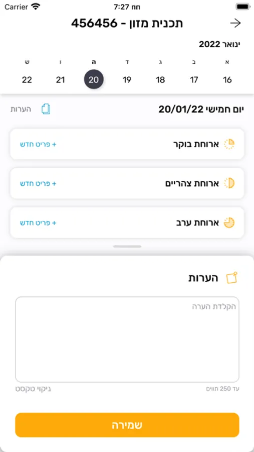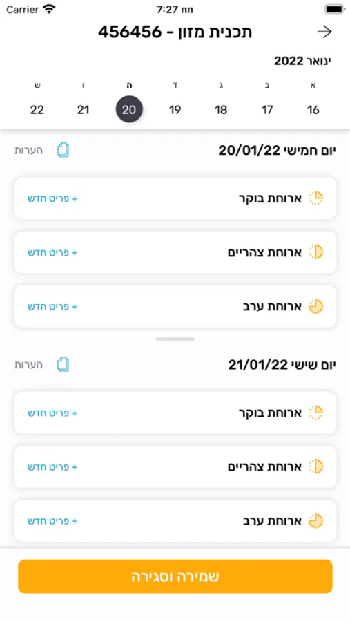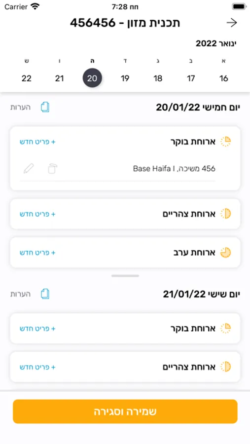 מהיום קל ונוח לקבל ממפקדי המסגרות בבסיסים את תוכנית המזון לשבועיים קדימה. בלחיצת כפתור תוכלו להפיק דוח מפורט עם כל הנתונים הדרושים לכם - סוגי ארוחות, כמויות ולאן צריך לשנע לפי הצורך.