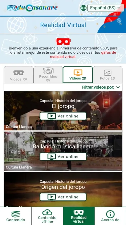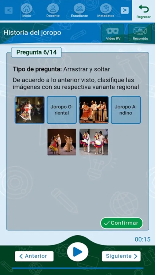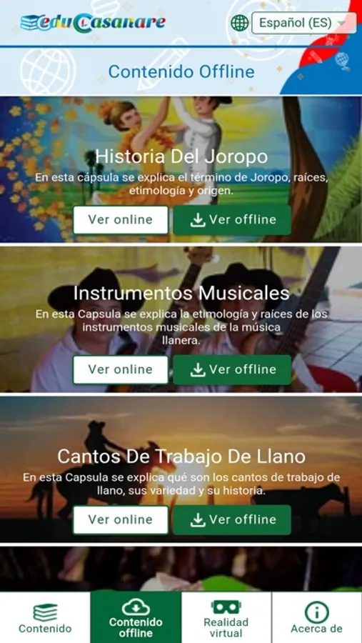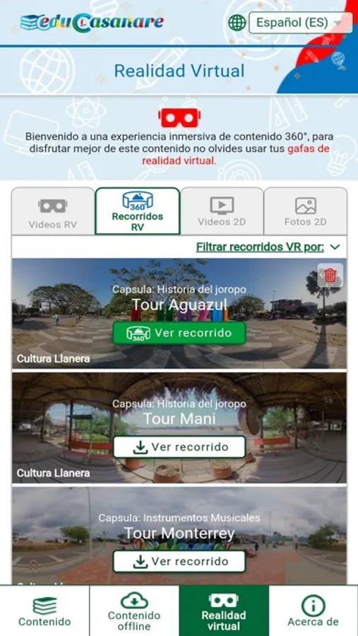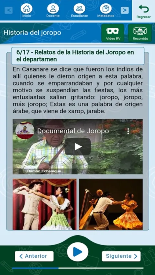 Desde aquí tendrás acceso a componentes de realidad virtual (VR) para el autoaprendizaje interactivo de temáticas Naranja como cultura llanera, patrimonio inmaterial y emprendimiento local, enfocados en educación básica primaria, básica secundaria y media académica.