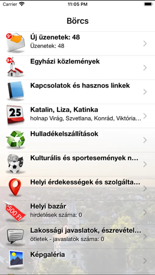 - Önkormányzati azonnali push értesítések okos telefonokra, kiadványok feltöltése, helyi elérhetőségek, egyházi közlemények, kulturális vagy sporthírek.