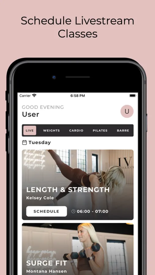 Join Workout Classes from the comfort of your home. Fun, professional work outs led by qualified instructors. Studio IVL offers a variety of classes from High Fit to Barre, Yoga, weights, cardio and more!
