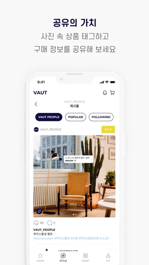 감각있는 일상을 공유하기 위한 소셜네트워킹 공간입니다. 제품이 태그된 게시물을 통해 새로운 홈 스타일링 정보를 얻을 수 있습니다.
