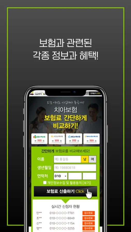 치아보험 가입 전 스마트폰으로 치아보험 비교견적 서비스를 받아보세요.