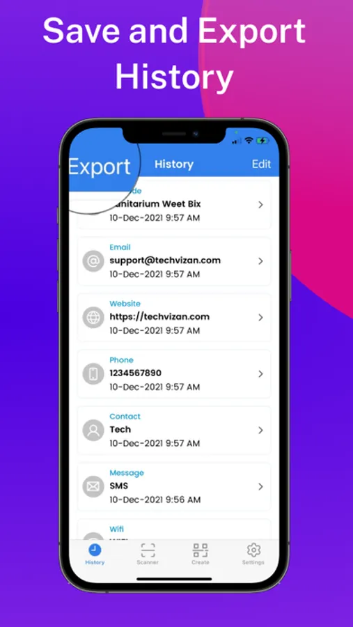 - Create QR codes for Email, Website, URL, text, phone number, contacts, message, WIFI, etc