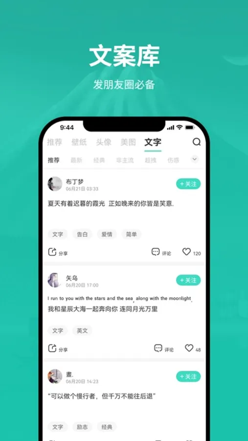 1. 兔找找社区的宝宝们每天都会分享各种文案和头像壁纸等美图素材。