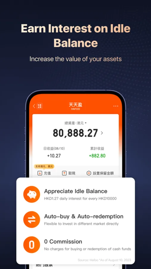 -Diversify investment choices: Hafoo trading account supports you to trade across multiple stock markets, including HK/US stocks, China A-shares, ETFs, CBBCs, warrants, funds, IPO & more instantly. Deposit in HKD and trade to avoid exchange rate fluctuations.