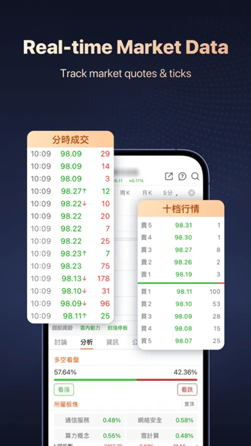 -Real-time market data: Track market quotes & ticks with no delay, and always stay updated on the global market.