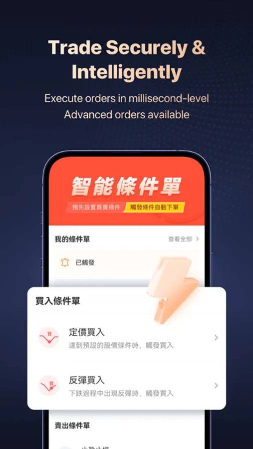 -Instant trading: Execute order at millisecond level for the best accuracy, or set advanced orders to trade when your instructions are met.