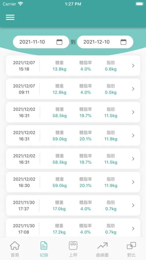通過每天上秤檢視身體各項數據及記錄,並透過每天的數據檢視自己的身體狀況。