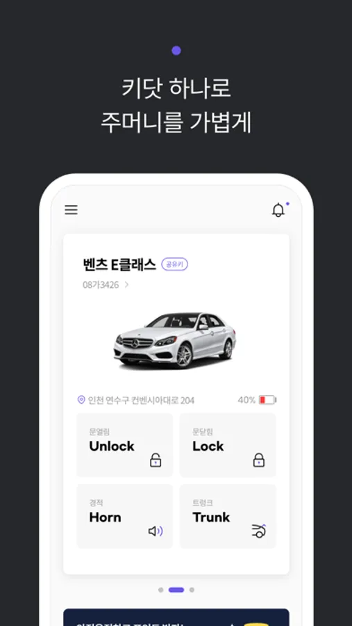 키닷 연결만으로 문열림/닫힘, 내 차 위치찾기 등의 다양한 서비스를 스마트폰 하나로 이용해 보세요.