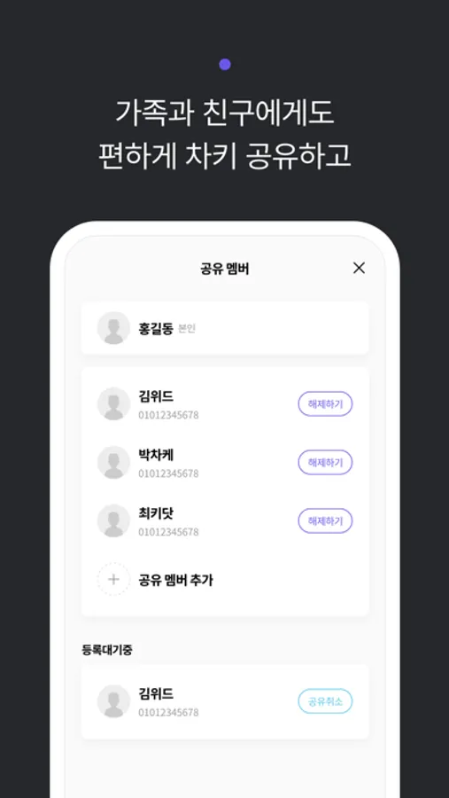 간편하게 내 차를 공유 가능(여러 대 가능)