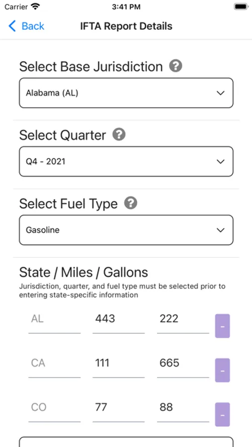 This app is a simple IFTA calculator for truck drivers, OTR, small businesses, and companies. Enter your state, mileage, and gallons and get your estimated results. History section will allow you to access previously entered results any time when needed. IFTA rates are gathered from the official website.