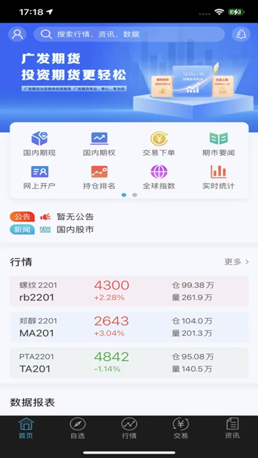 广发期货财讯通”是一款集实时行情、交易、新闻资讯、数据报表、官方信息发布为一体的新一代衍生品行情信息门户。“广发期货财讯通”依托大商所DCE交易7.0系统微服务架构,打造一个智能化、数字化的移动互联终端。支持大商所五档行情。