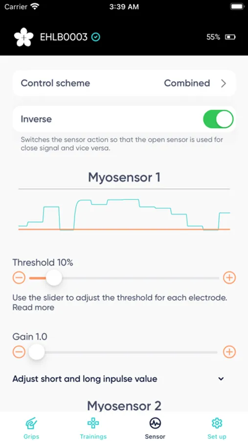 Adjust settings of the Esper Hand or control it (as an additional controller), train muscle sensitivity and stay updated with the new features.