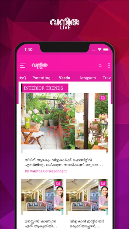 Vanitha is India's largest circulated magazines for women. VANITHA LIVE app publishes wide variety of topics spanning from, special features, celebrity interviews, babycare to parenting, women's health to nutrition, housekeeping tips to cooking recipes, among many more.