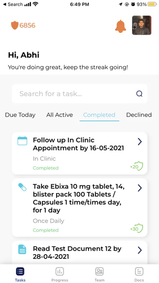 The Nomadic Care patient app is an easy to use ecosystem for creating actionable care plan tasks: