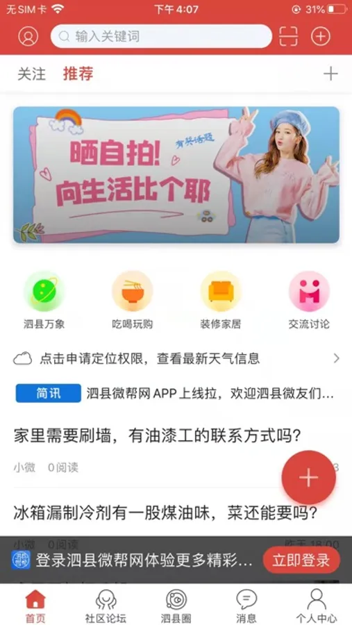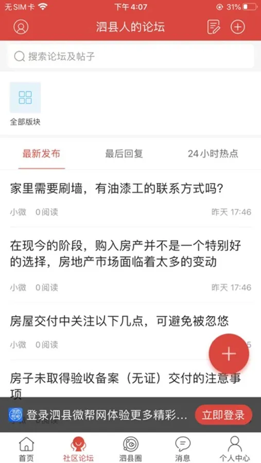 泗县微帮网APP是泗县本地极具人气的社交应用,为您提供本地新闻资讯、爆料八卦、情感故事、求职招聘、相亲交友、找房信息、便民信息、分享身边美食、晒出生活美图、参与线上线下聚会,下载泗县微帮网APP帮你快速找到泗县共同兴趣爱好的圈子。