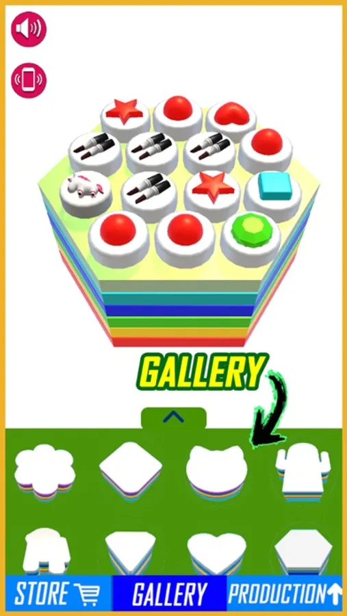The game gallery contains different pop it toys like cats, heart and hexagon.