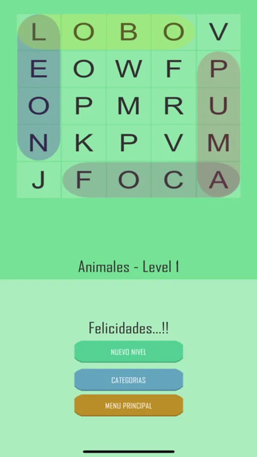 Para resolver, bastara con deslizar el dedo por la palabra encontrada y de esta manera se marcara.