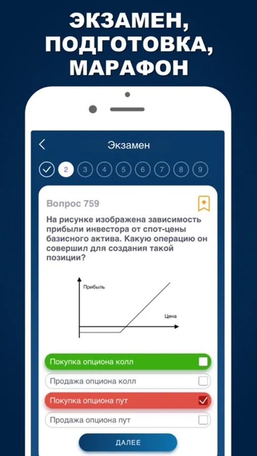 ► Режим марафона - прохождение тестирования по всем вопросам или определенной части вопросов.