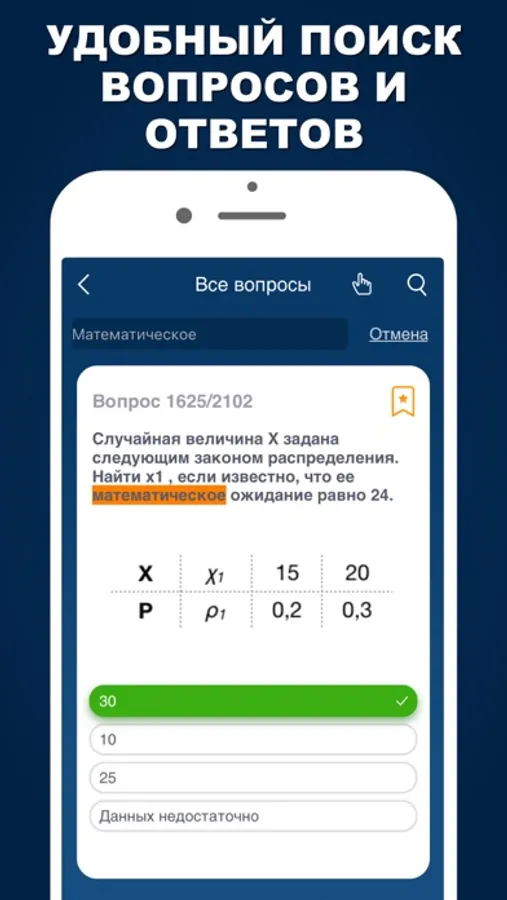 ► Поиск по номеру вопроса или по тексту вопроса в режиме Обучения.