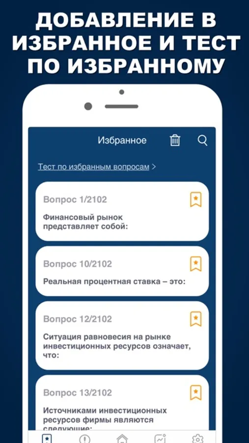 ► Избранное - можно добавлять вопросы в Избранное из всех трех режимов, а также из Топа ошибок.